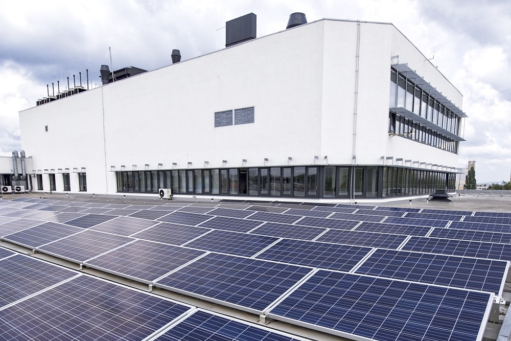 Fotovoltaické panely na budově tiskárny Ministerstva vnitra výrazně přispěly ke snížení energetické náročnosti budovy, foto: SFŽP ČR